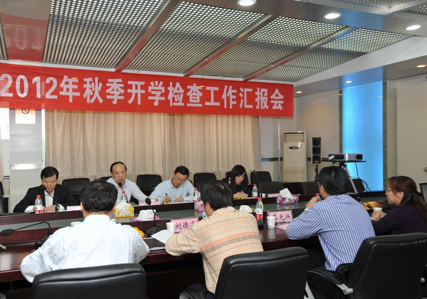 10月16日上午,以教育厅对外合作与交流处祁品伟处长为组长的省教育厅秋季开学检查组一行四人莅临我校,检查和指导我校2012年秋季开学工作。工作检查汇报会在二号教学楼三楼会议室举行,校领导刘德富、钟毓宁、蔡光兴出席会议,学校办公室、纪委、学工部、发规处等相关部门负责人参加会议,会议由蔡光兴副书记主持。